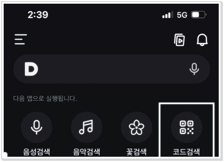 마이크 모양을 클릭하셨다면, 아래와 같은 화면이 나타날 것입니다. 이때, 화면 하단에 "코드 검색"이라는 옵션이 보이시죠? 이 부분을 클릭하신 후, 큐알코드를 스캔하시면 됩니다. 정말 간단하죠? 이 방법으로 손쉽게 큐알코드를 스캔할 수 있으니, 한번 시도해 보세요!