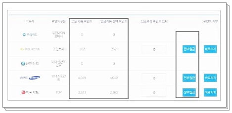 카드포인트 통합조회 계좌입금, 현금전환