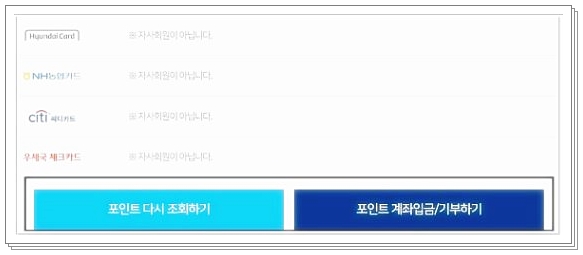 카드포인트 통합조회 계좌입금, 현금전환