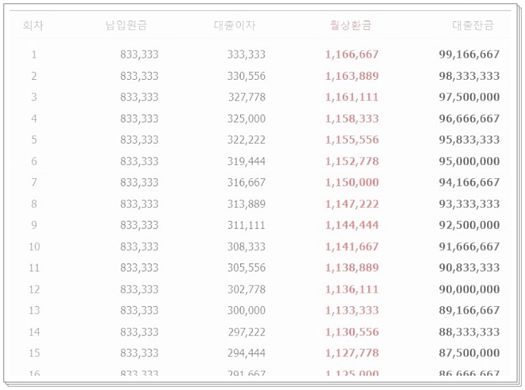- 매달 일정한 금액으로 관리가 쉬운 원리금 균등상환,