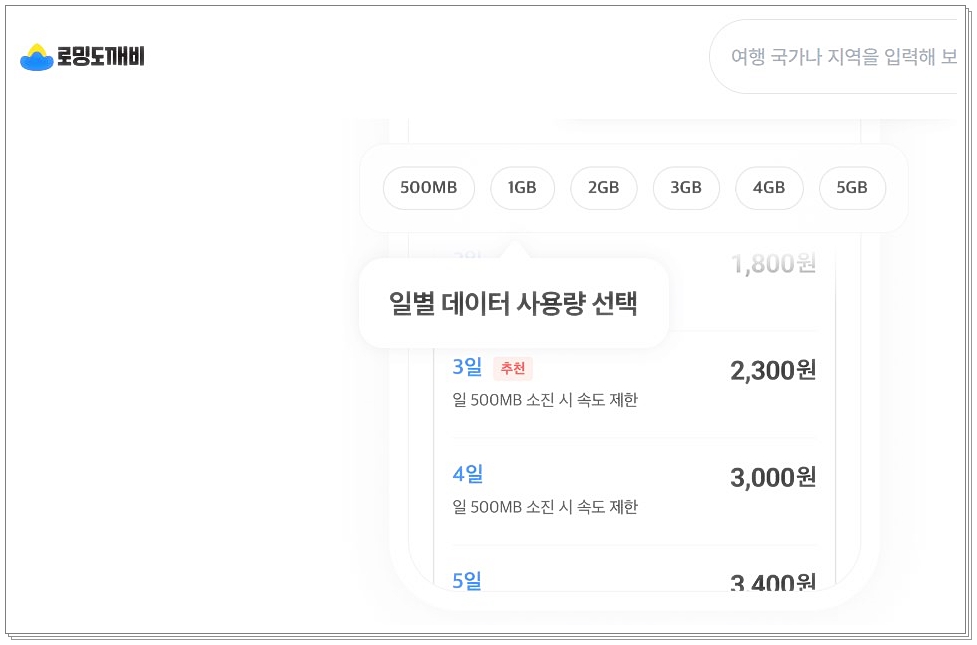 - 원하는 국가와 데이터 요금제를 선택한 후 결제합니다.