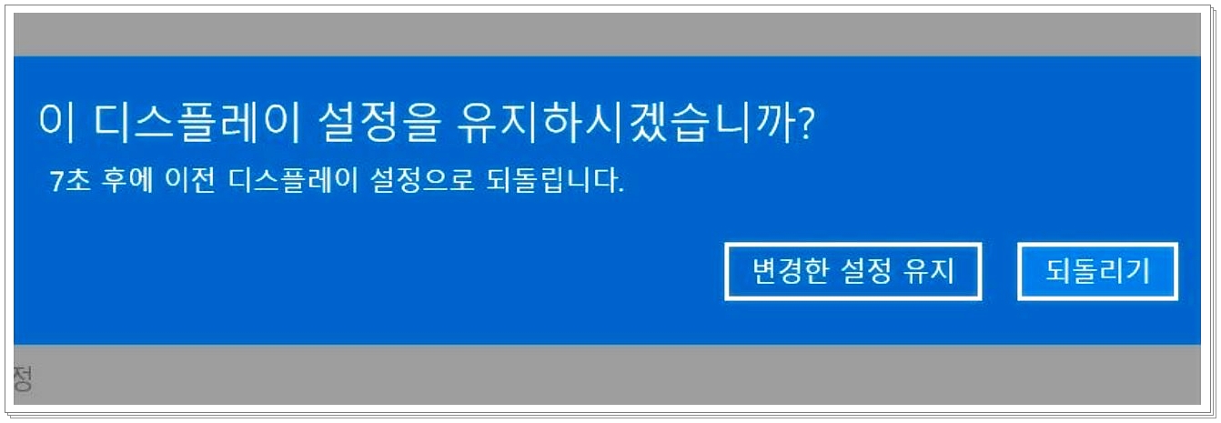 위의 그림과 같이 디스플레이 설정을 유지하시겠습니까? 라는 문구가 뜨게 되는데요. 이때에 변경한 설정을 유지 하는 곳에 클릭을 하시어 이를 유지하시면 첫번째 방법은 마무리가 되겠습니다.