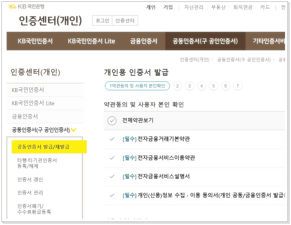 이 메뉴는 보통 인증센터 또는 인증서 관리 항목 안에 있습니다.