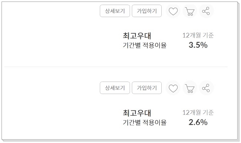 - 단기 상품(6개월 이하)은 기본 금리가 낮거나, 우대금리 폭이 작아 총 금리 수준이 제한적