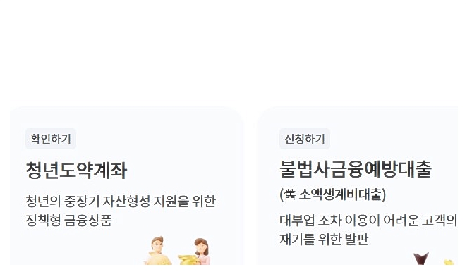 - 새희망홀씨: 중신용자를 위한 대출로, 연 10.5% 이하 금리로 생활 안정과 재기 자금을 지원합니다.