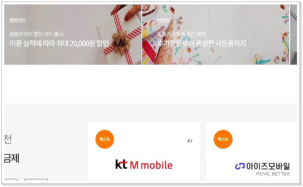 - 메인 화면 또는 요금제 페이지 상단에서 이벤트 요금제만 모아보기 가능