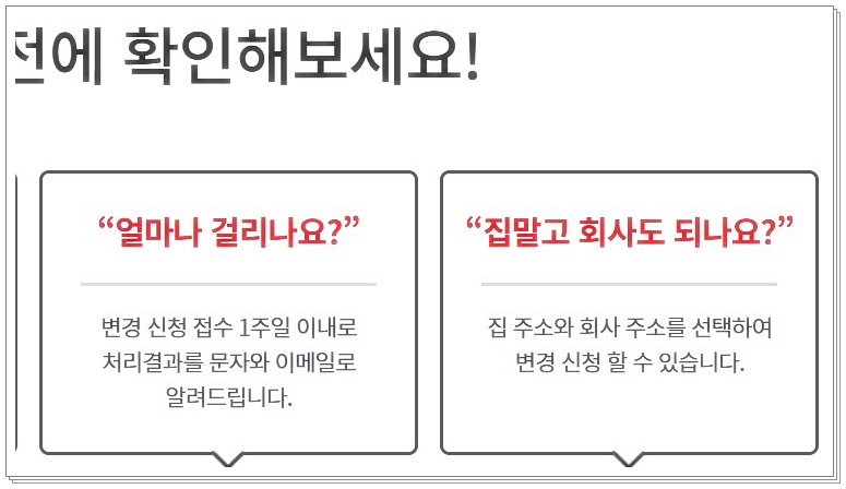 - 문의처: 주소연락처일괄변경 서비스센터(☎ 1588-6040) 또는 홈페이지 ‘신청내역’ 메뉴