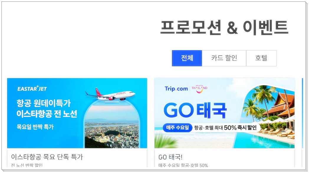 - 프로모션 조건: 예컨대 여행상품·항공권 묶음(번들) 할인, 앱 전용 할인, 특정 노선·항공사 한정 할인 등이 포함됨.