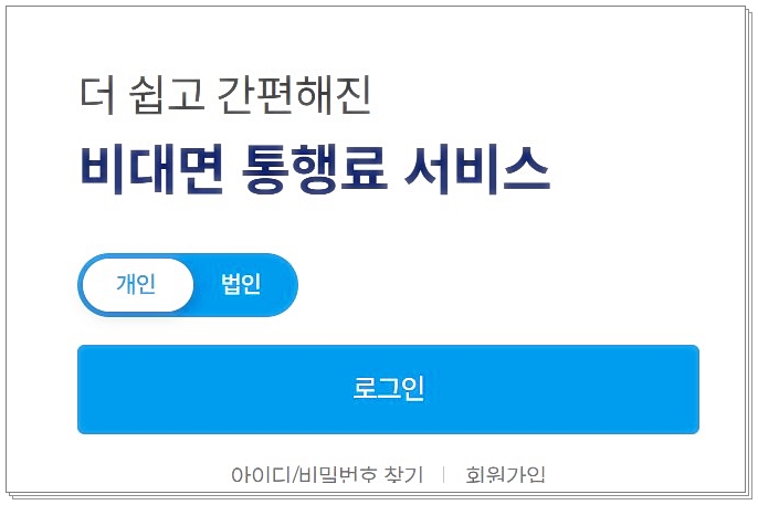 ① 포털에서 "하이패스 미납 조회" 검색 → 공식 홈페이지 접속